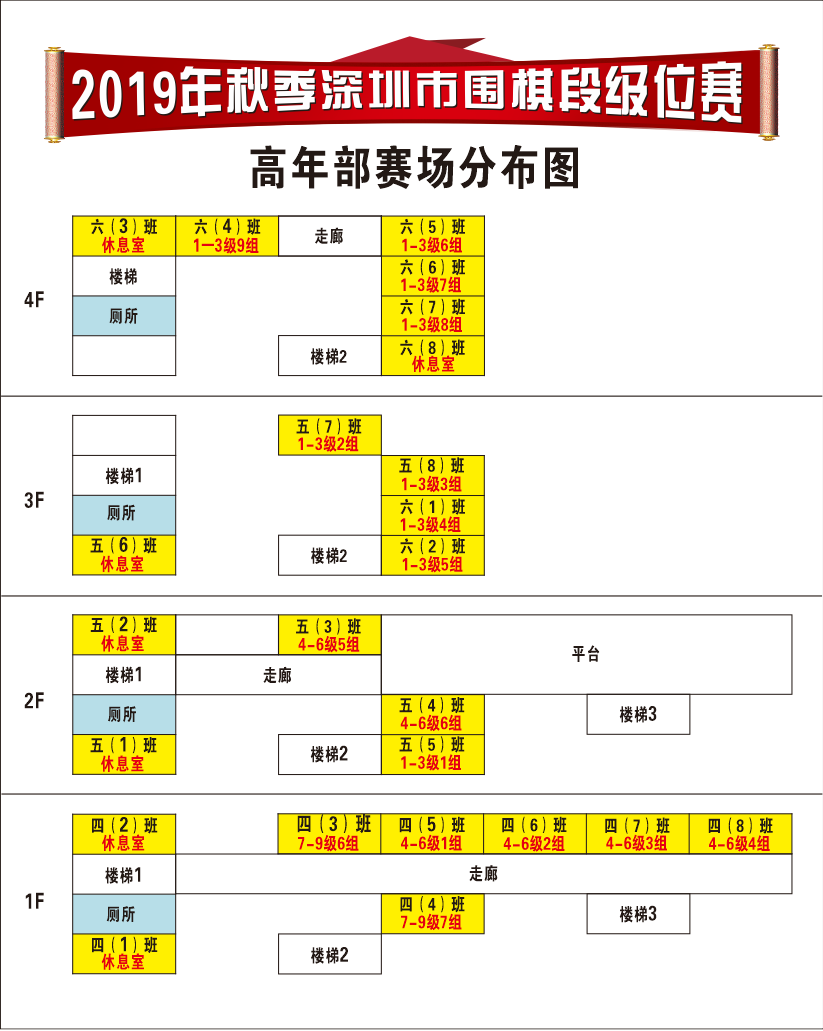 (5).每轮对局结束后请前往该组楼层休息室等待下一轮的比赛,切不可独自在赛场随意走动,以免错过开赛时间。